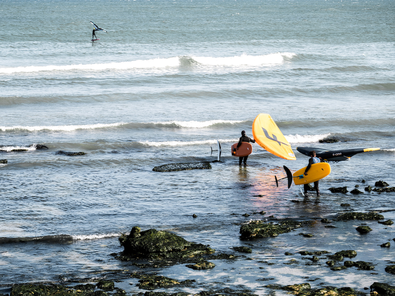 Wellen abreiten mit dem Foil? Das ist einfach ein unbeschreibliches Gefühl. Wingfoilen lässt dich Wellenritte erleben, wie du es dir nie erträumt hättest. Wir konnten stundenlang die Wellen abfahren – von einer Welle in die nächste. Auch ohne den Wing aktiv zu nutzen – durch pumpen des Boards kannst du dir direkt die nächste Welle schnappen. Weit vor den im Wasser liegenden und wartenden Wellenreitern drehten wir schon wieder ab; ein Schlag Höhe – weiter ging’s. Hammer!